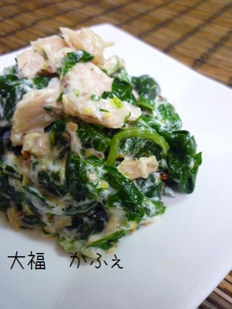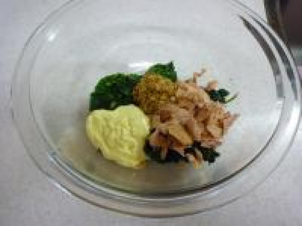 ![]() ボールにモロヘイヤをさらに水分を絞っていれてツナ、粒マスタード、マヨネーズを加えて絡め合わせたら完成です。
