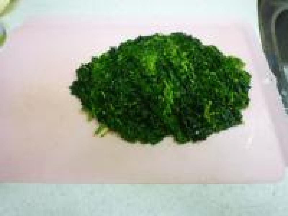 ![]() しっかり、水分を絞ったモロヘイヤを粗みじん切りにします。