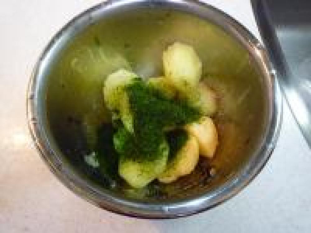 ![]() ボールに茹でたじゃがいも、残りの材料を加えて、じゃがいもを粗くつぶしながら、混ぜ合わせたら完成です。