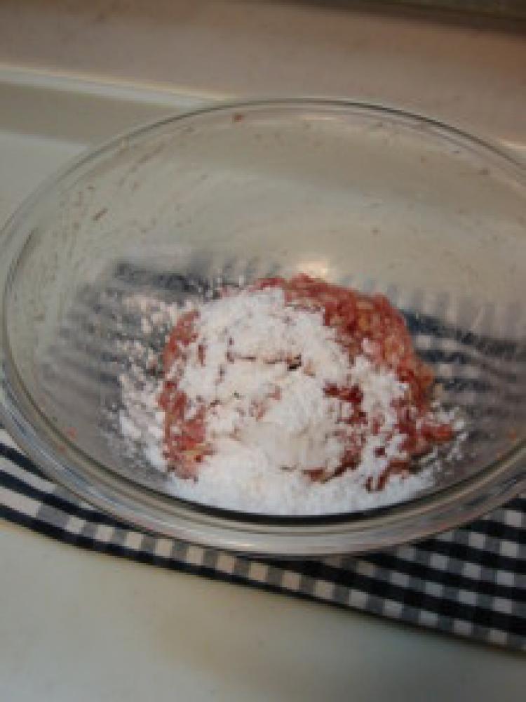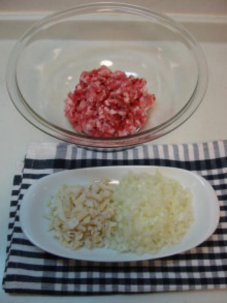 ![]() 下ごしらえしたひき肉、玉ねぎ、たけのこと調味料を合わせて
