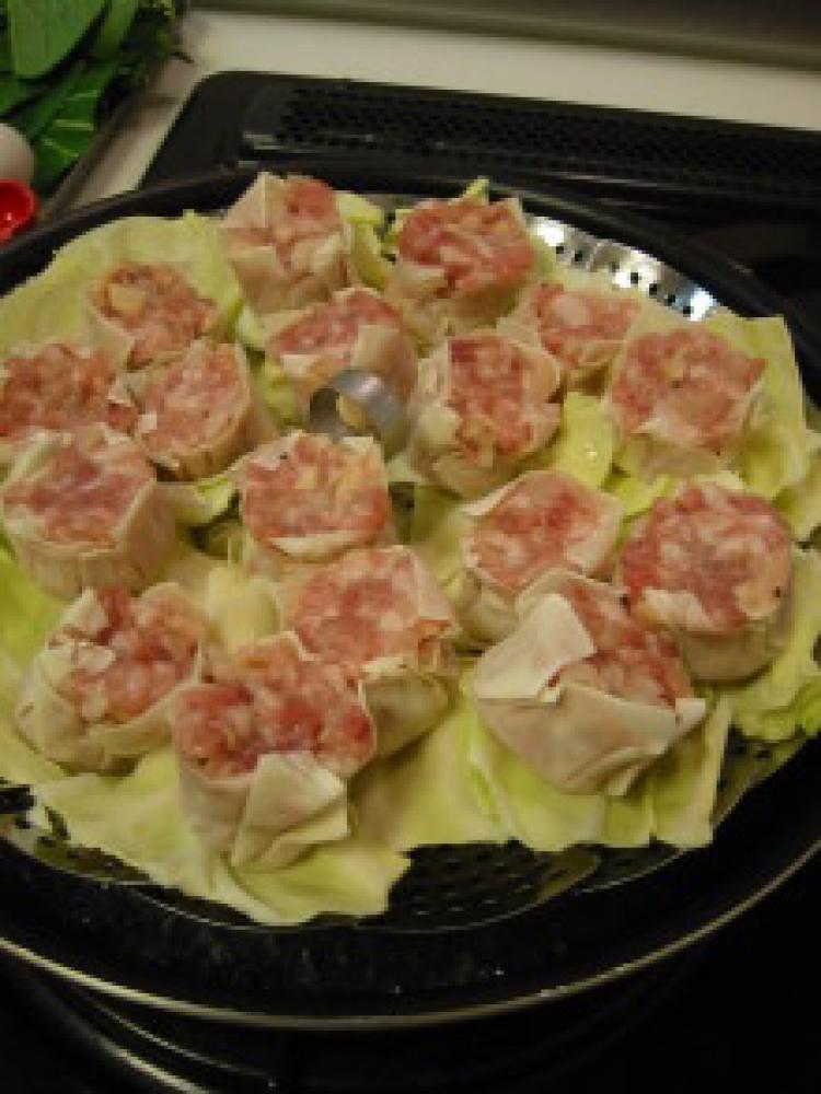 ![]() (あれば)キャベツを敷いたセイロなどにシュウマイを並べて8~9分蒸したら