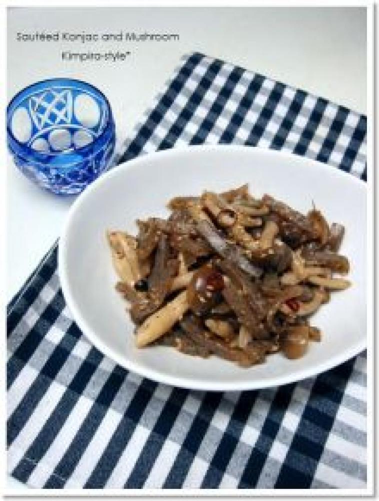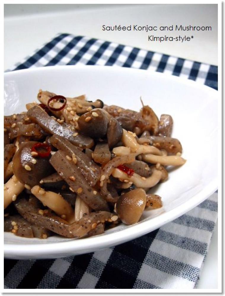 下準備:しめじは小房に分け、コンニャクは細切りにした後さっと水で洗う。