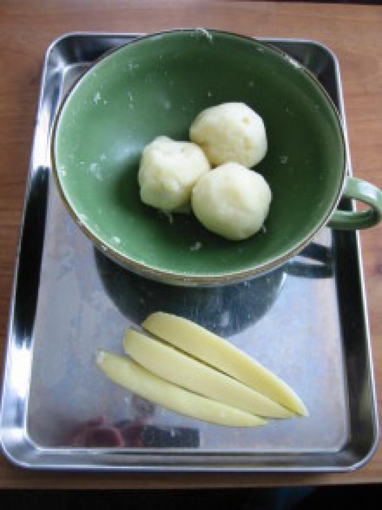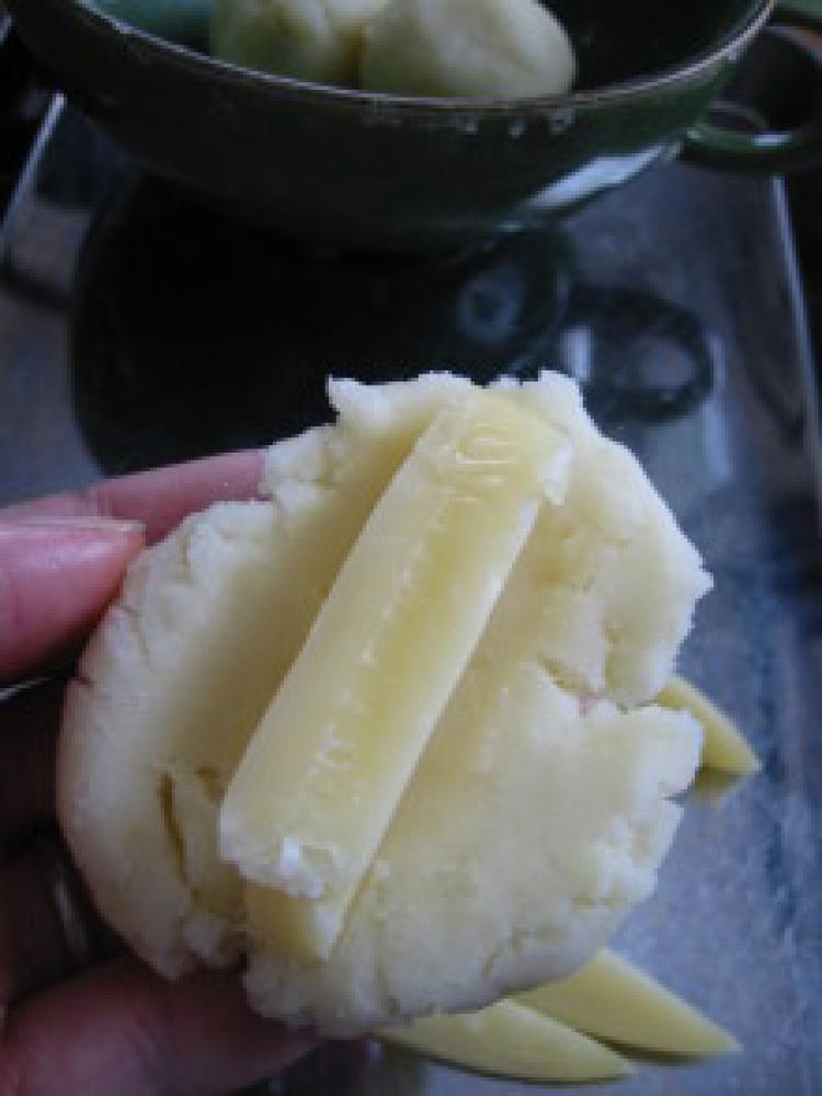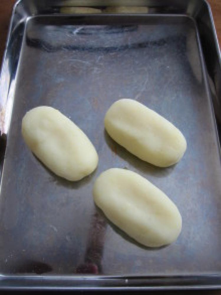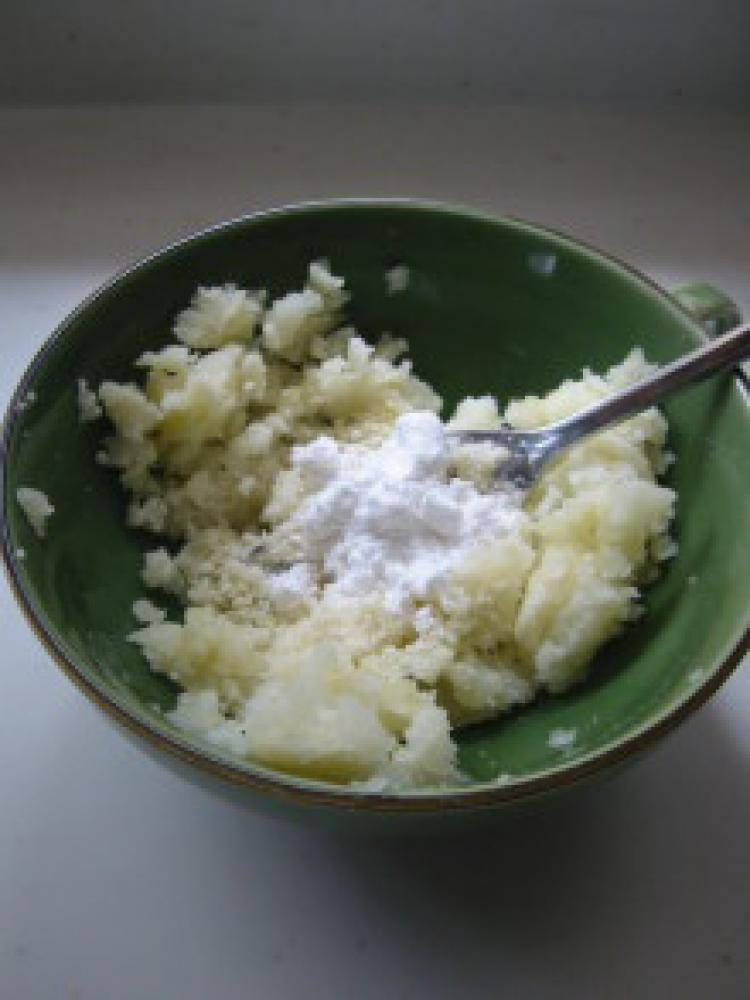 ![]() マッシュしたジャガイモに(A)を加えたら、まとまるまで捏ねて…