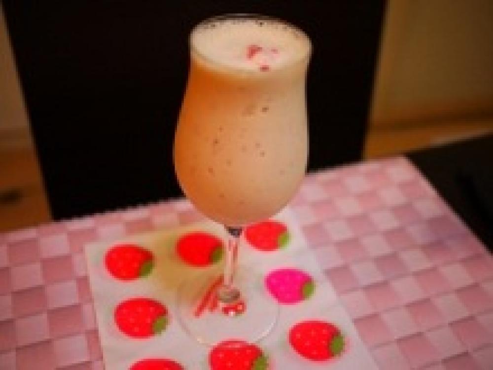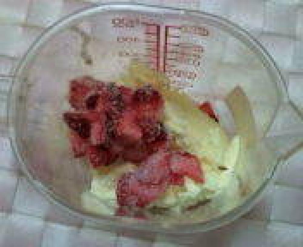 ![]() アイスクリーム・冷凍いちご・しみこむ豆乳を容器に入れる。