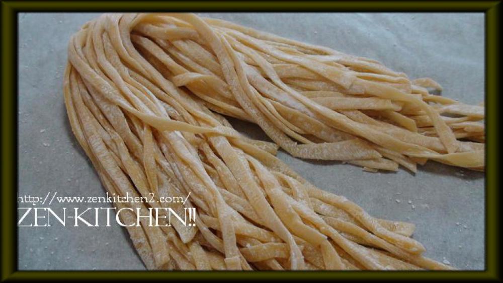 一人前を切り終わったら、ほぐしながら麺全体に(切り口がくっつき易い為)打ち粉まぶします。残りの3人分も同じ作業を繰り返す