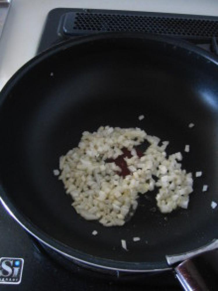 ![]() 玉ねぎをごま油でよく炒め、味を引き出します。
