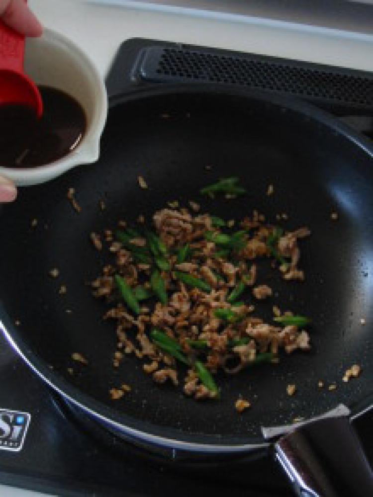 ![]() 肉を加えてよく炒めます。