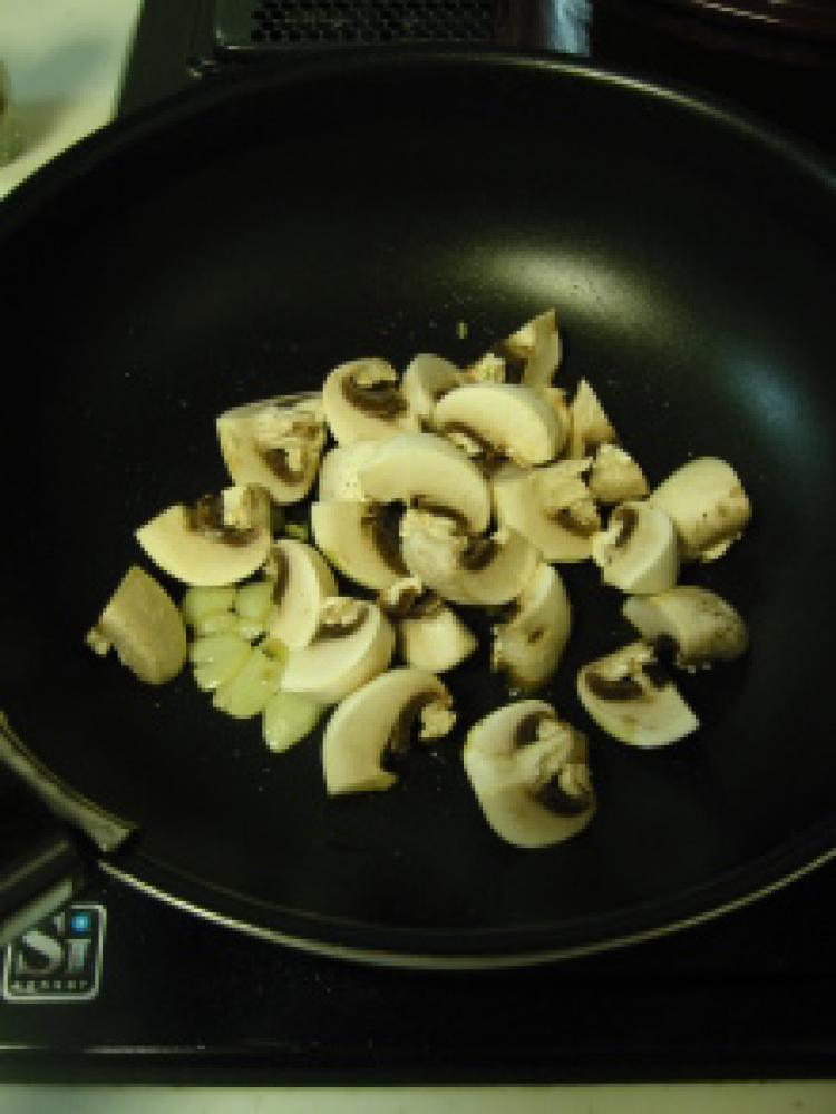 香りが出てきたら中火でマッシュルームを炒め合わせ、白ワインを加えて塩こしょうで味を調えたら…。