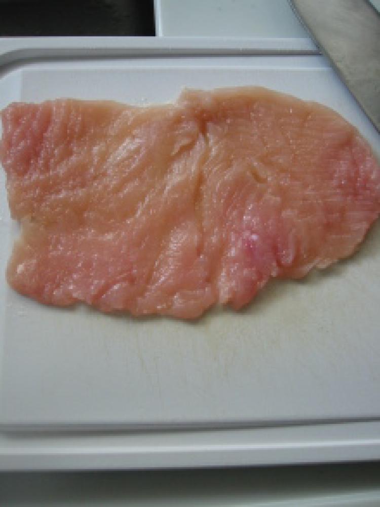 ![]() 鶏肉は包丁で開いてから、5mmくらいの厚さにのばします。両面に塩こしょうをしたら…。
