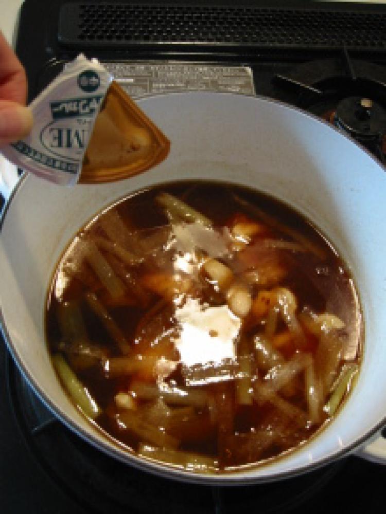 ![]() カレールゥを加えて味を調えます。