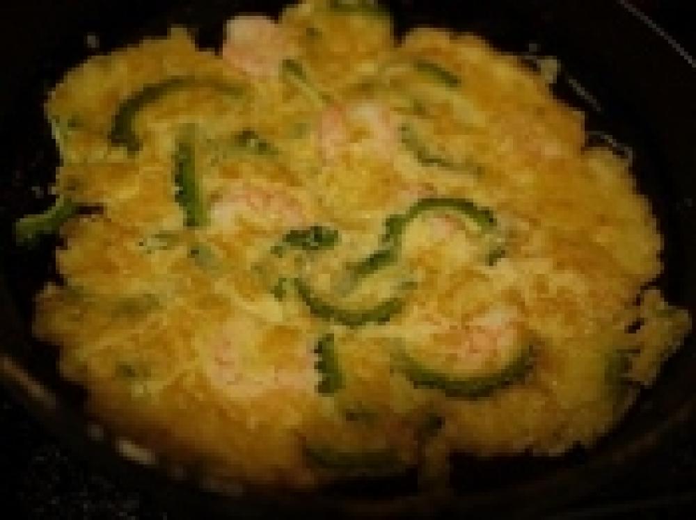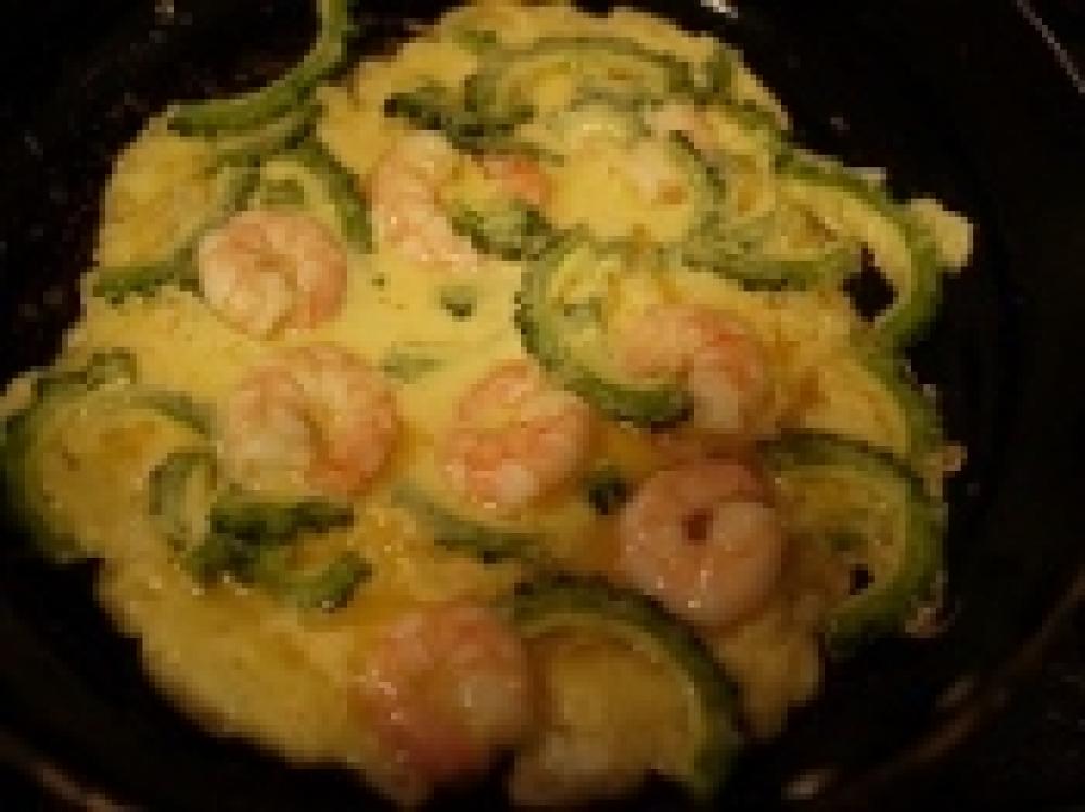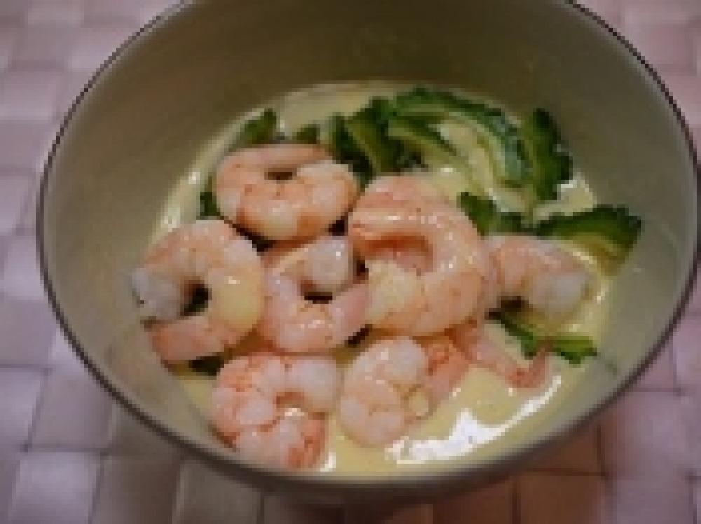 ![]() 1のゴーヤとボイル海老を加え混ぜる。