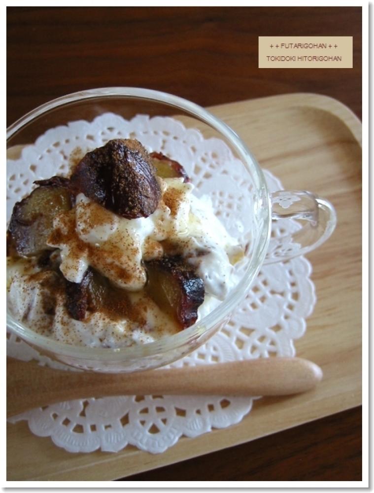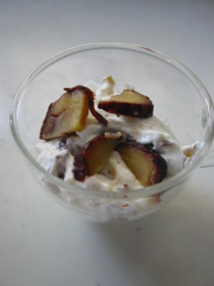 ![]() 半量の栗をみじん切りにしてヨーグルトと混ぜます。