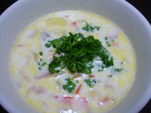 ④が煮立ったら、生クリームと殻から外したあさりの身を加え沸騰直前まで温める。