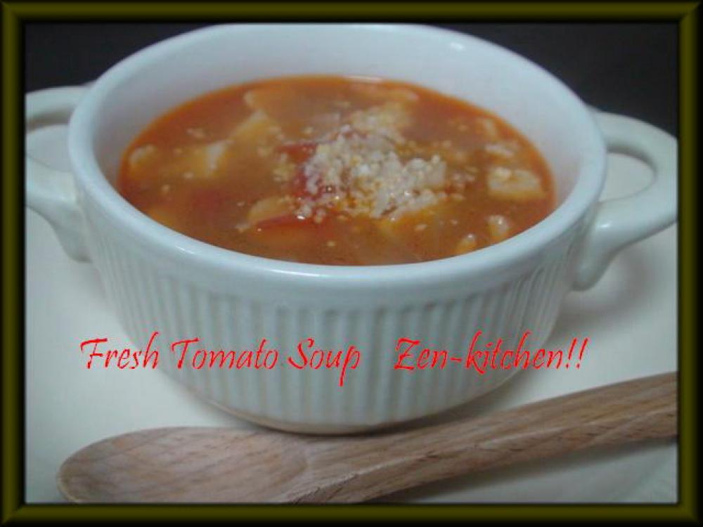 水をいれて、トマトを入れて沸騰させてアクをとる