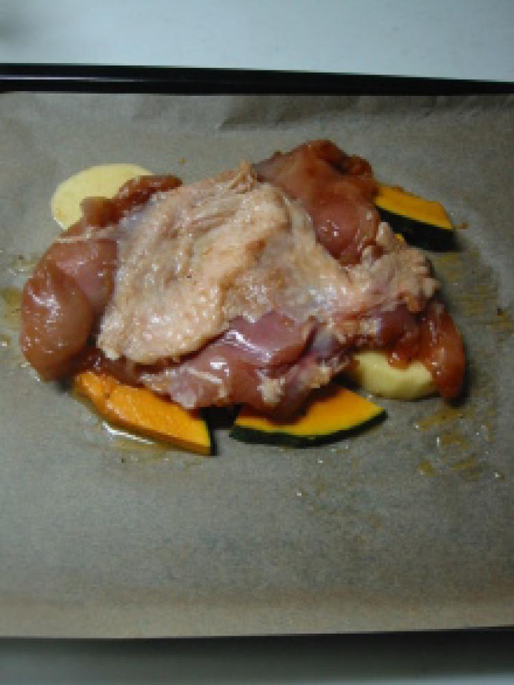 ![]() 鶏肉をのせたら、オーブンで20分ほど焼いて完成です☆