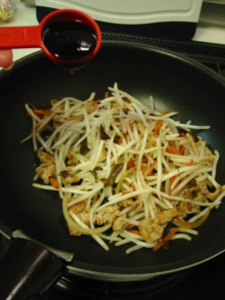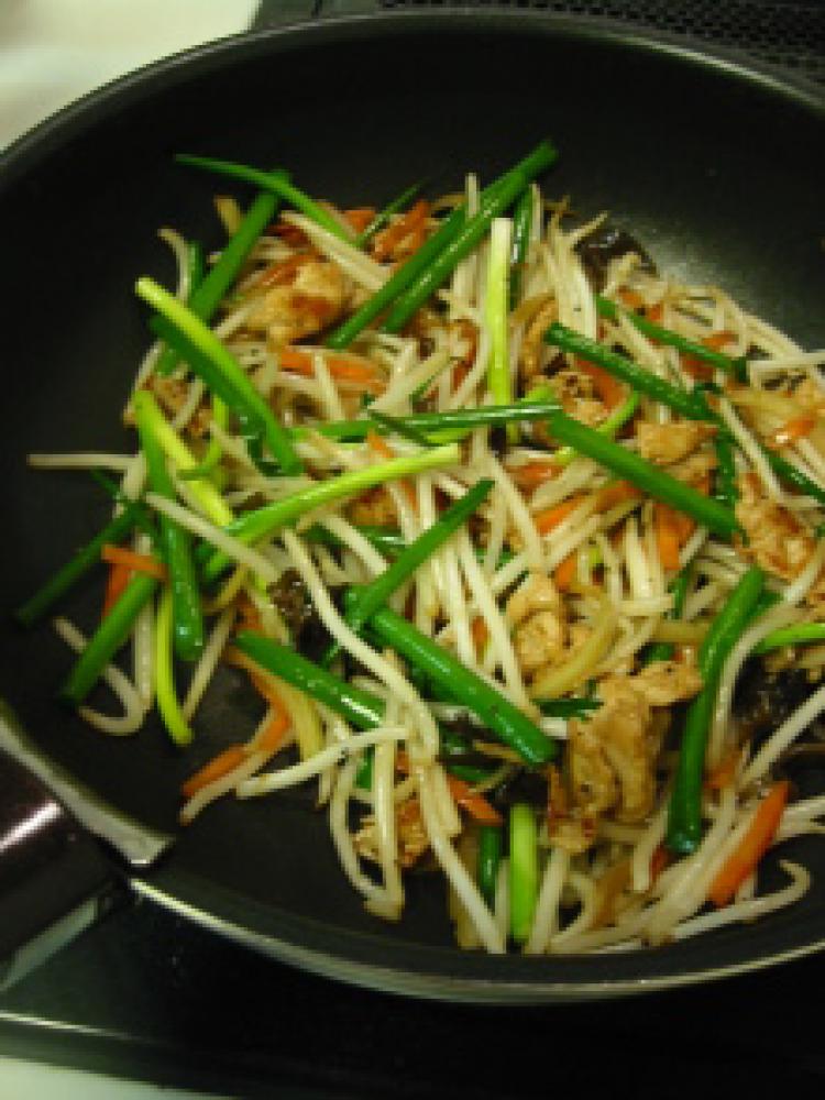 ![]() サッと炒めたらナンプラーとオイスターソースで味付け。