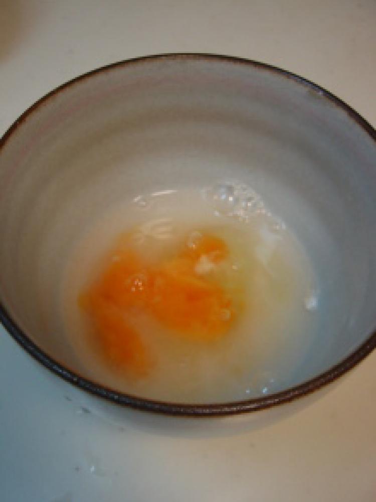 ![]() 卵と片栗粉、水の材料(B)を合わせてよく混ぜておきます。(この写真よりもっと混ぜてね)