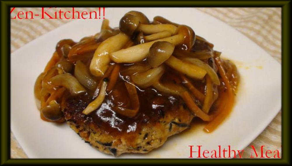 お皿にハンバーグをのせて、餡をかけて完成