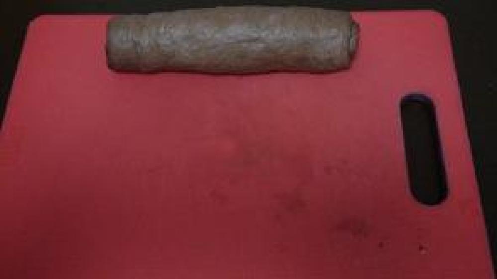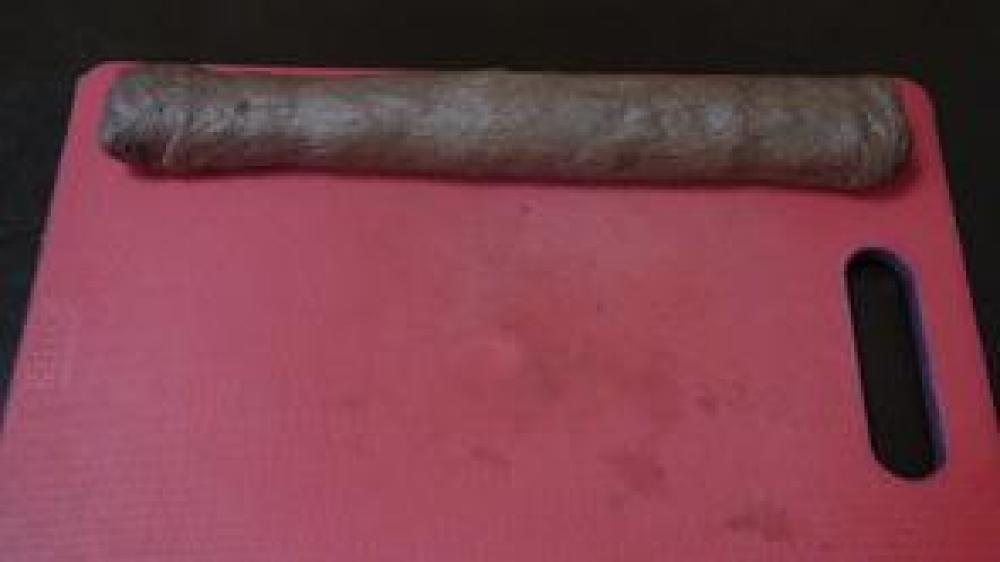 ![]() 丸めた生地を倍くらいの長さに伸ばします