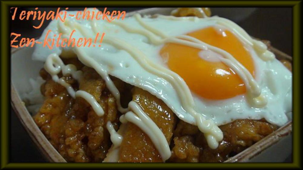 プライパンに残っているタレをとり天丼にかけて、目玉焼きをのせ、マヨネーズをかけて完成!!