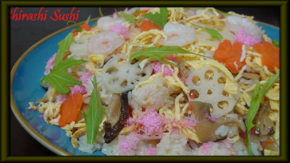 お皿に盛り付け、エビ、錦糸たまご、桜でんぶなどを盛り付けて完成!