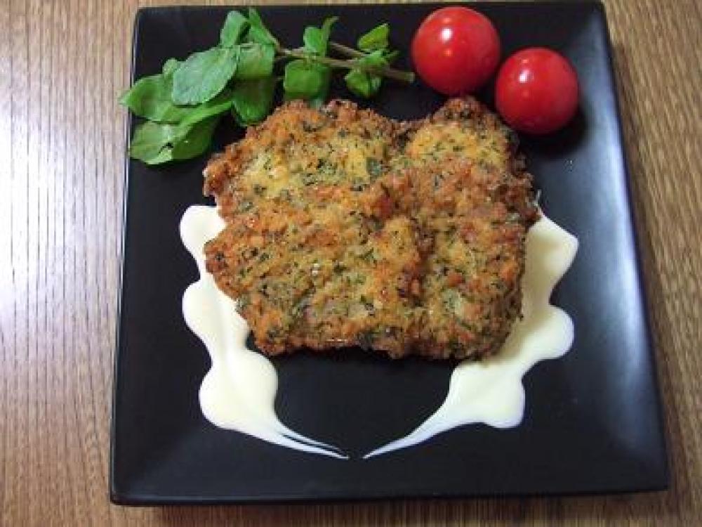 豚ロースに、小麦粉→とき卵→☆の衣、と順につけます。