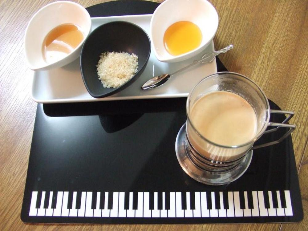 メープルシロップ・きび砂糖・ハチミツを用意しました。どれを入れても美味しく頂けます。 |