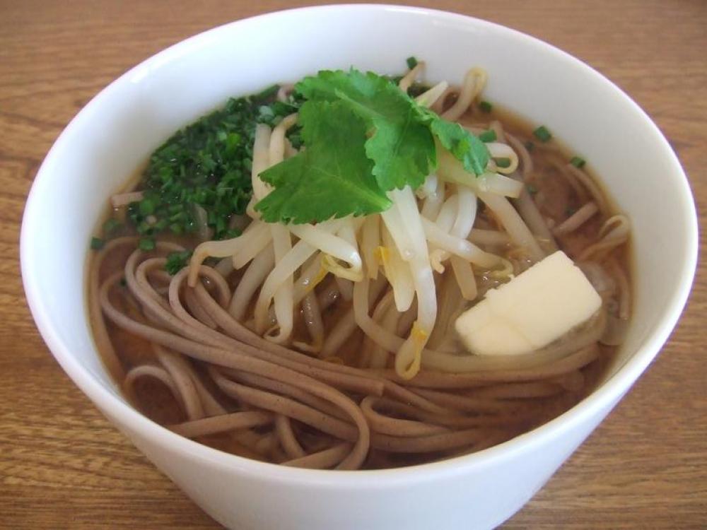 お好みで万能ねぎ等散らして(今日は三つ葉ものせて)バターをのせ、七味(ラー油でもコショウでもOK)をかけて頂きます。