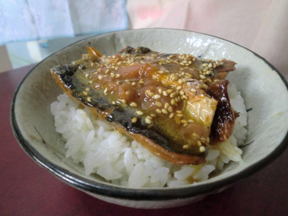 ごはんを器に盛り、缶から出したサンマをのせます。