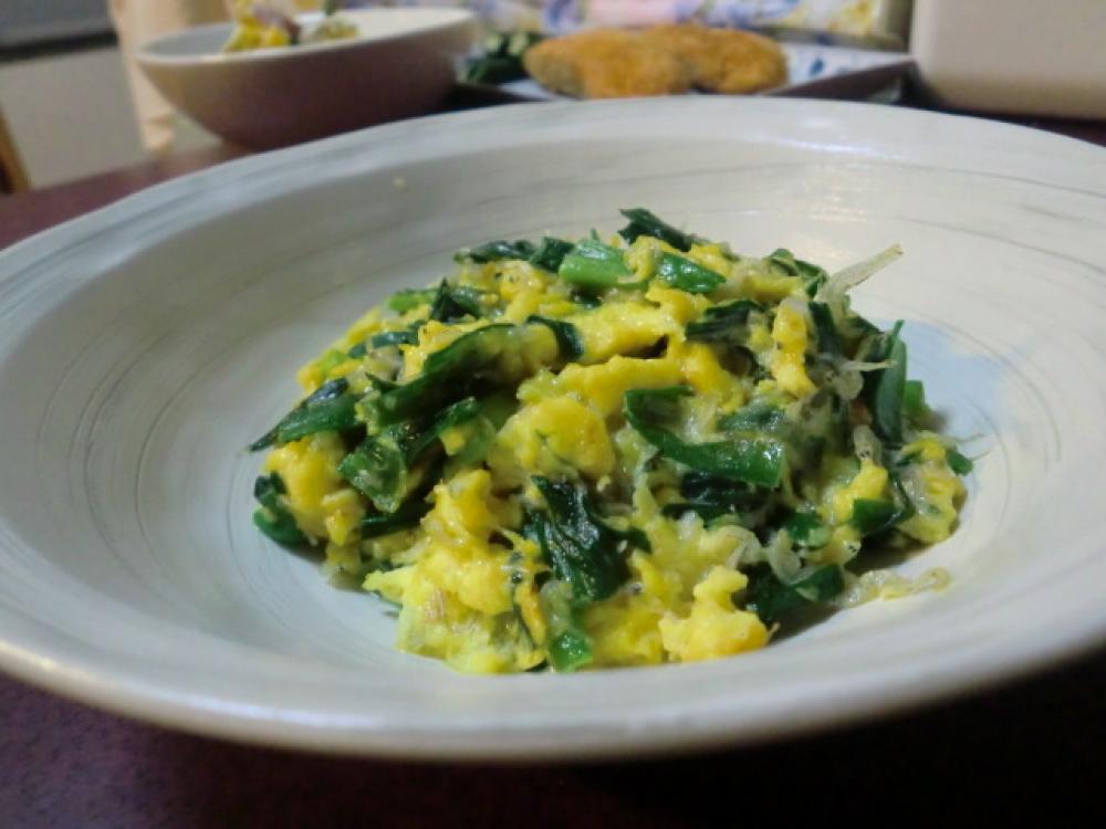 卵が固まってきたら大きく何度か混ぜ、まだ柔らかいうちに火からおろします。(*あとは予熱で火を通します)