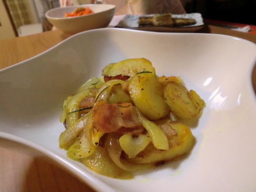 フライパンにオリーブ油を熱し、2の玉ネギ、ベーコンを入れて炒め、玉ネギが好みの固さになったら火を止めて、1度取り出します