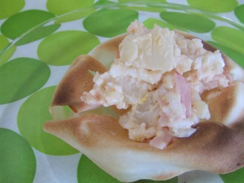 ココットの内側に、うす~く油を塗って春巻きの皮をそこに入れて形作り、トースターで2分チン!何個も一緒にチンできます!