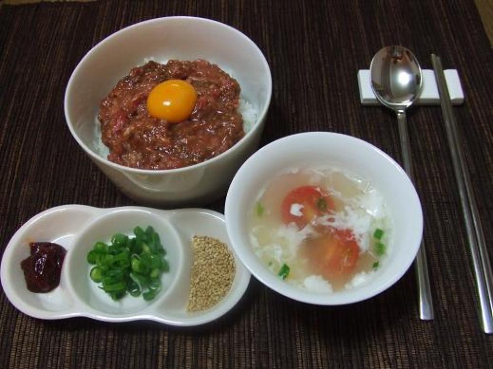 ご飯の上に盛って、真ん中に黄身を落とします。応用の効くレシピなので、皆さんのアイディアで美味しくキレイな丼作ってね♡