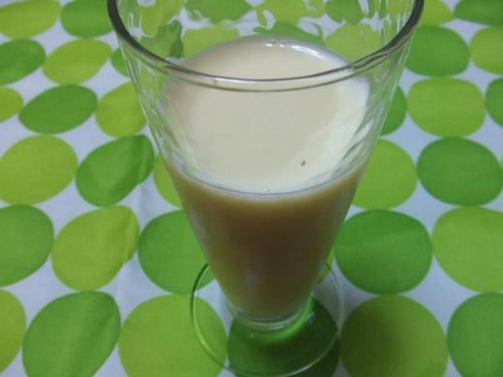 マンゴーカルピスと牛乳混ぜるとマンゴーラッシー味に!混ぜ具合は、いつものカルピスの量と、水の代わりに牛乳な感じです。