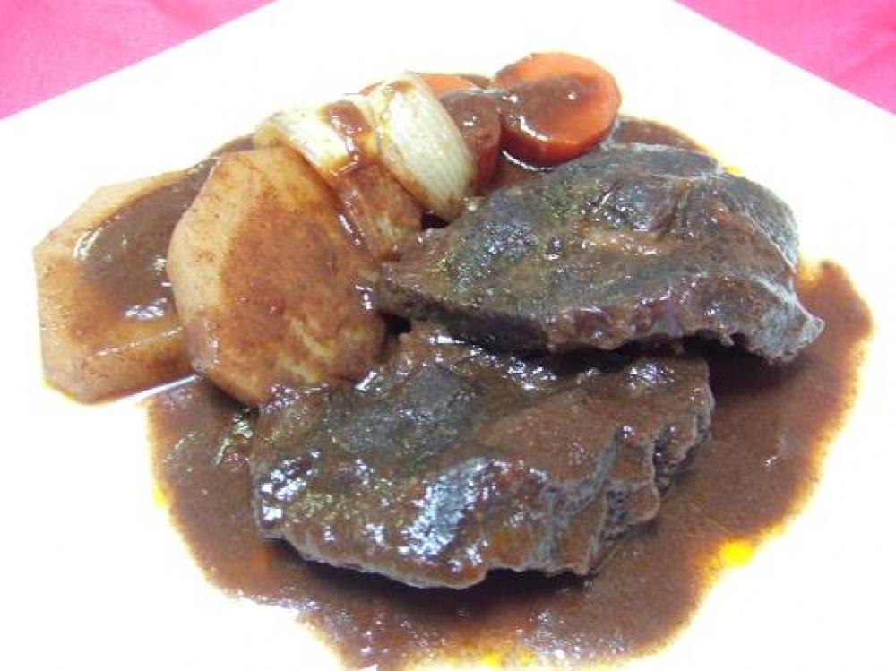Aのソースを沸騰させたら、筋切りした牛肉を入れてアク取りシートをのせて中火で20~30分