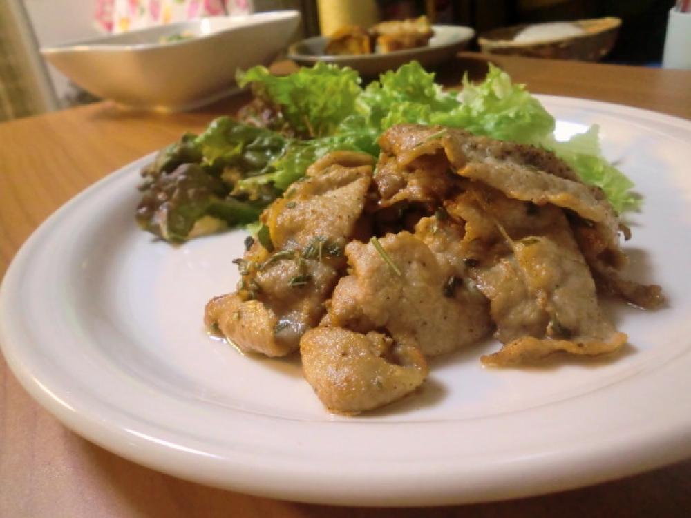 豚肉は、食べやすい長さにカットして、軽く塩、コショウをふります。