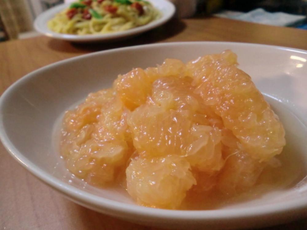 グレフルは、小房に分け、うす皮をむいて、混ぜ合わせたAの材料と合わせます。