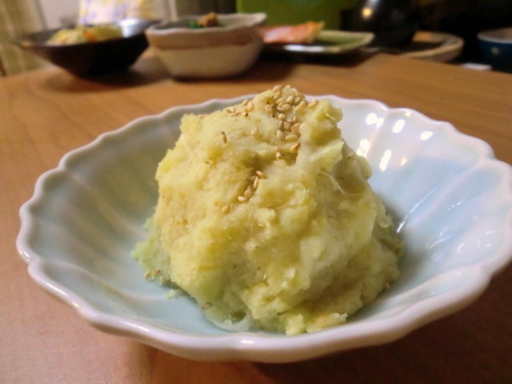 水気を切ったら、鍋に戻し、水分を飛ばすようにして、粉をふかせます。熱いうちにつぶします。