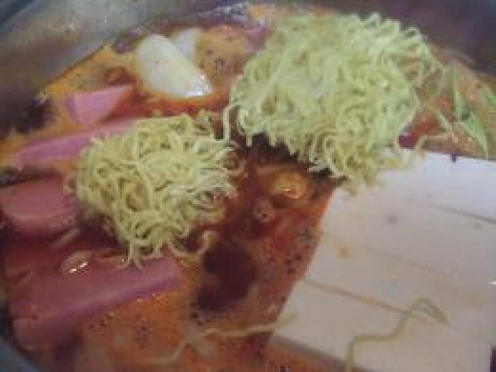 ![]() いい感じに煮えたら麺を2つ~4つに割って入れて、表示時間より少し短めに煮たら出来上がり!