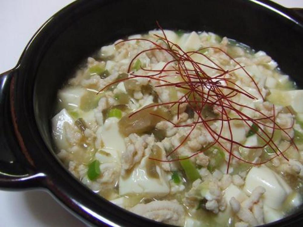 挽肉がパラパラになったら豆腐を入れて少し煮て(ここで味を決めます。足りなければ塩足してね。)