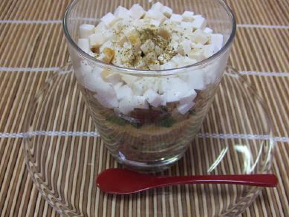 ![]() 1番上に豆腐をのせ、最後にうなぎのタレをトロリかけます。お好みで山椒をかけて頂きます。