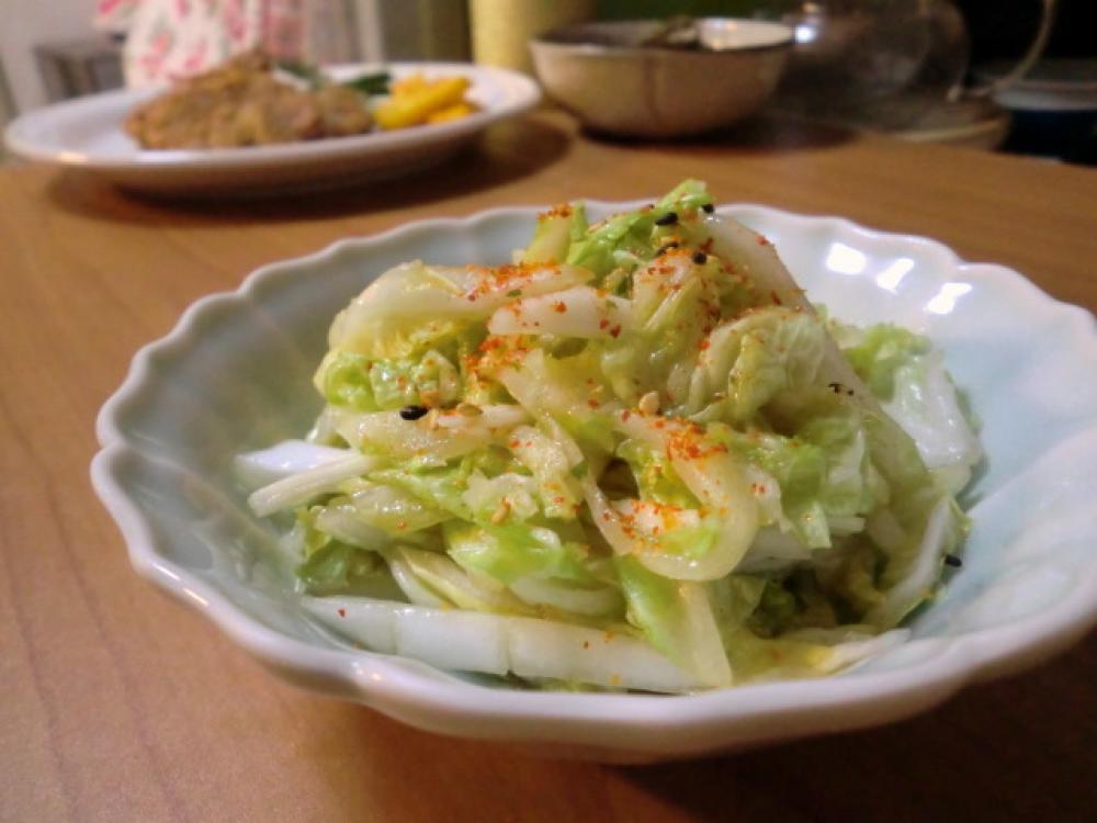 Aの材料を合わせ、①の白菜を和えて、味をなじむまで、しばらくおきます。