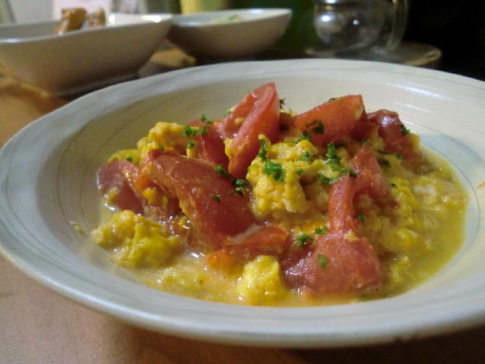 フライパンにバターを溶かし、①のトマトを加えてサッと炒め、合わせたAを加えます。