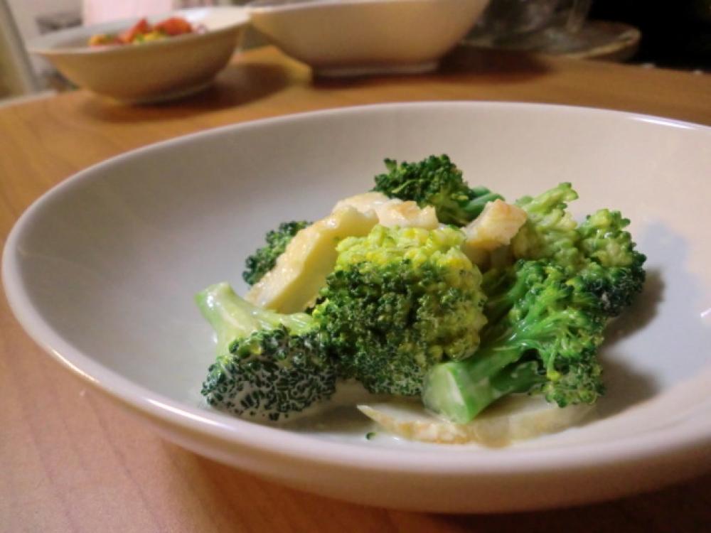 ブロッコリーは小房に分けて茹で、冷水に取ります。笹かまは、5mm幅位に斜め切りします。