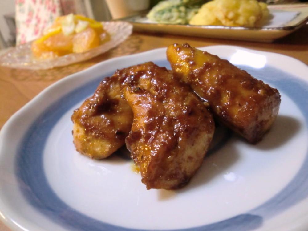 焼きあがったら、残りのタレを加え汁気をとばすようにして、からめます。(*焦げやすいので、気をつけて下さい。)