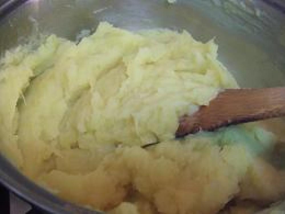 ![]() 柔らかくなったら水分を捨てて牛乳少量&塩ひとつまみ入れて弱火にしてマッシュポテトの要領でのばしていきます。