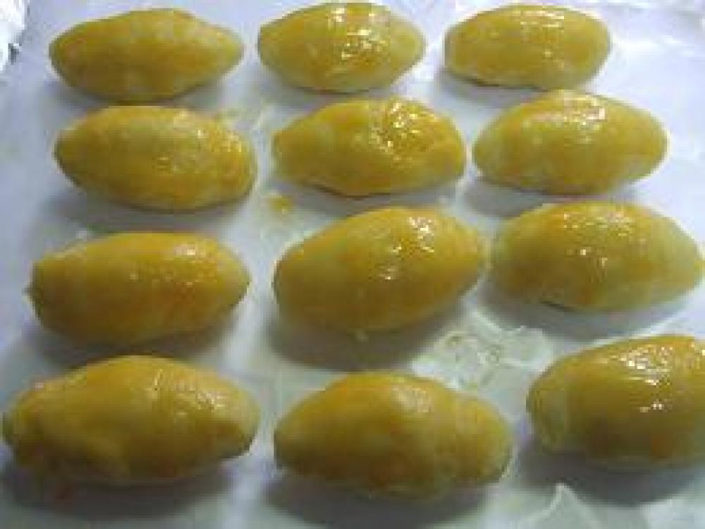 ![]() 上に卵の黄身を塗ってトースターで5分。出来上がり~