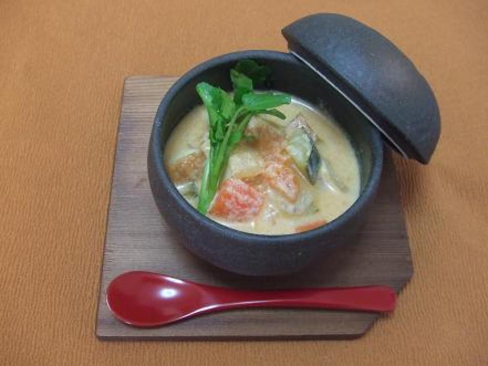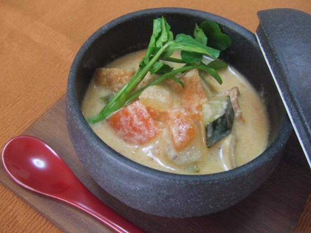 厚揚げを入れて1分くらいしたら牛乳(豆乳)を加えて一煮立ちしたら出来上がり!