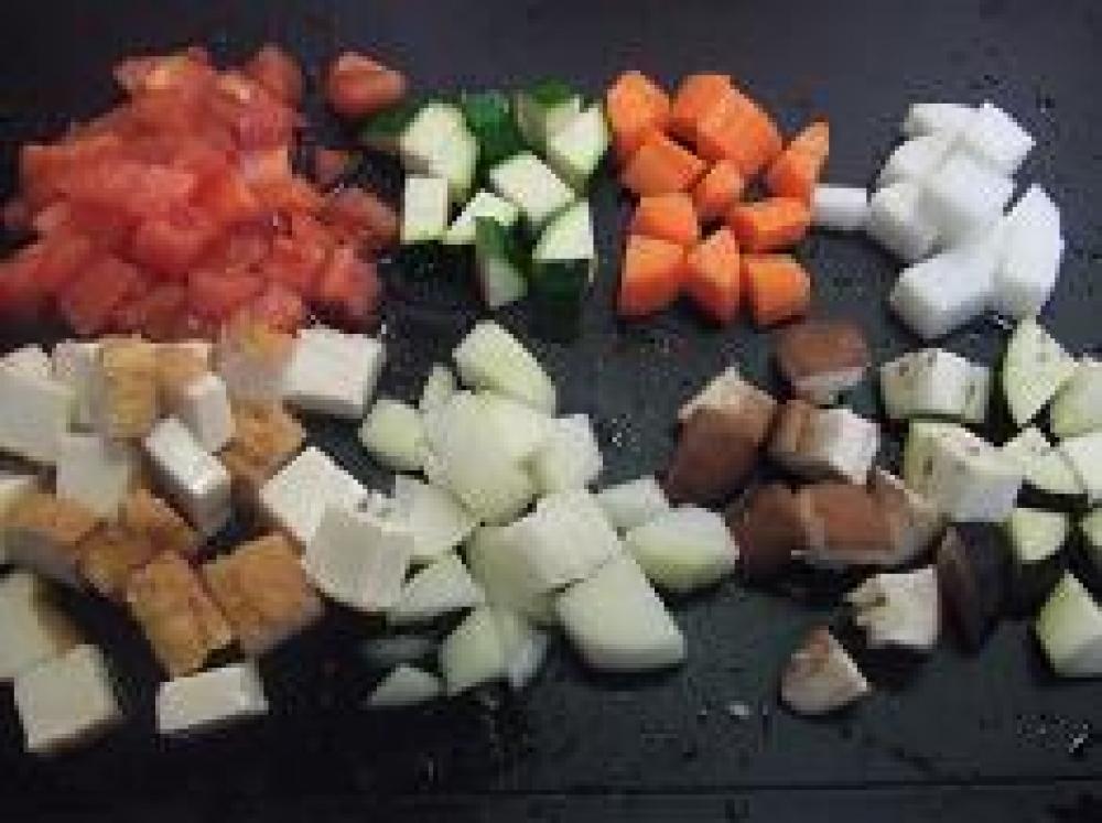 ![]() 材料はクレソン以外全部角切りにしておきます。