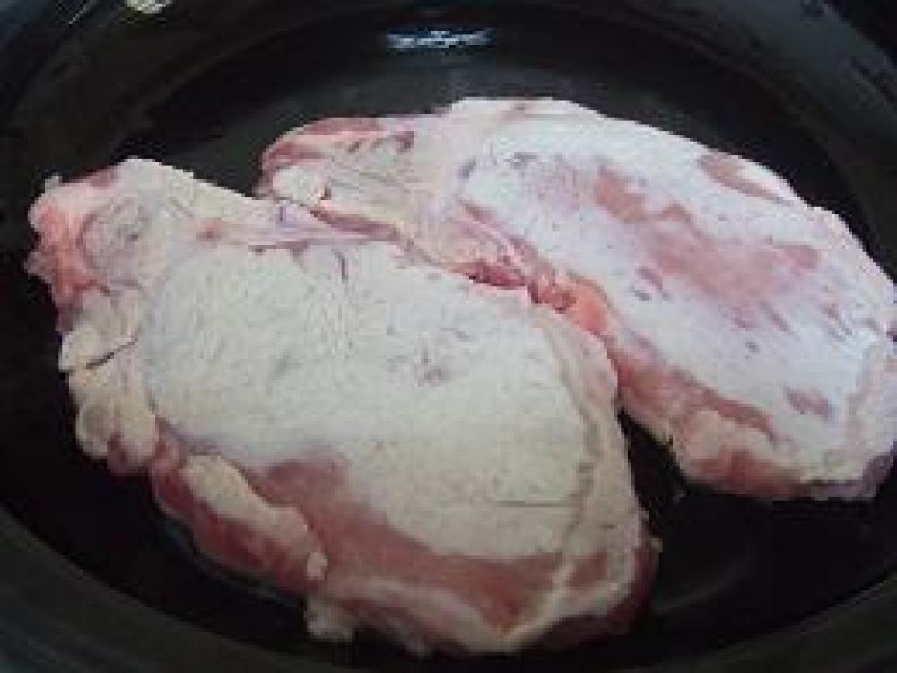 ![]() タジン鍋に薄く油を敷いて豚肉の両面が白くなるくらい少し焼きます。